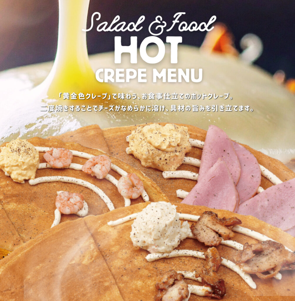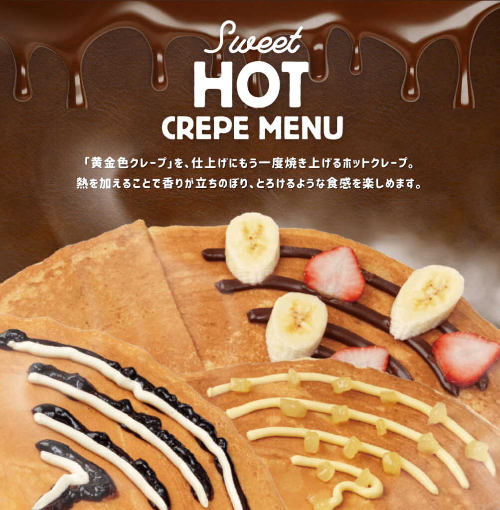 「黄金色クレープ」を、仕上げにもう一度焼き上げるホットクレープ。